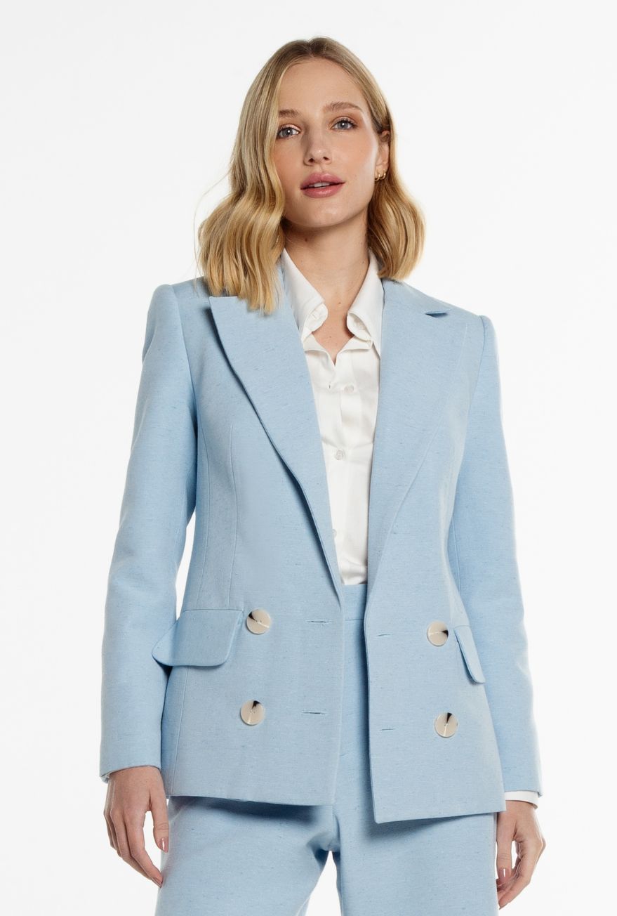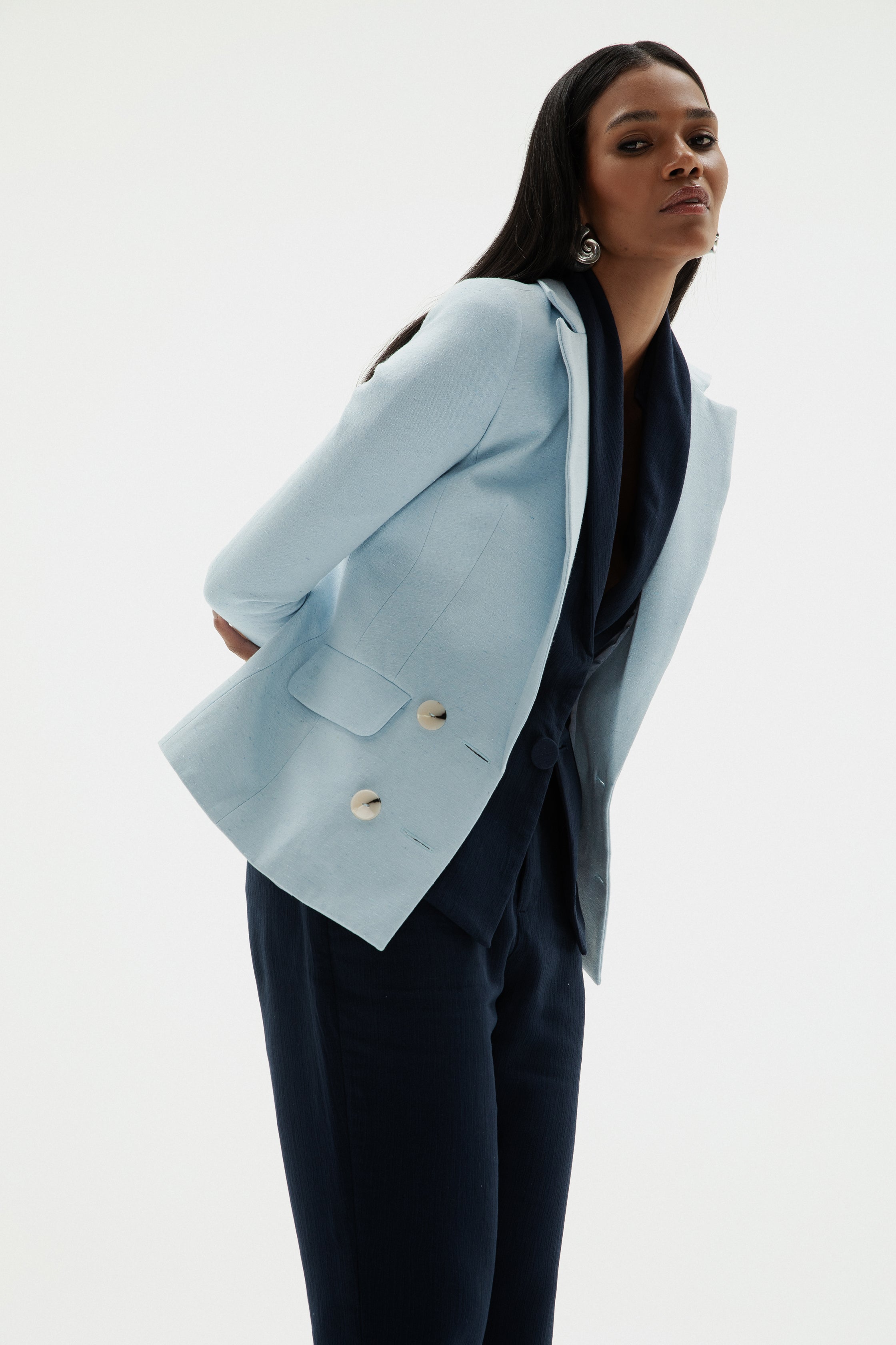 Peça de estilo clássico e essencial, o Blazer Alvorada é fabricado em tecido misto de algodão e poliéster reciclados, conferindo ao modelo um caimento natural e casual. Sua modelagem é ajustada ao corpo e levemente alongada e possui fechamento transpassado com botões de resina ecofriendly. O produto é inteiramente forrado e estruturado para um caimento impecável.