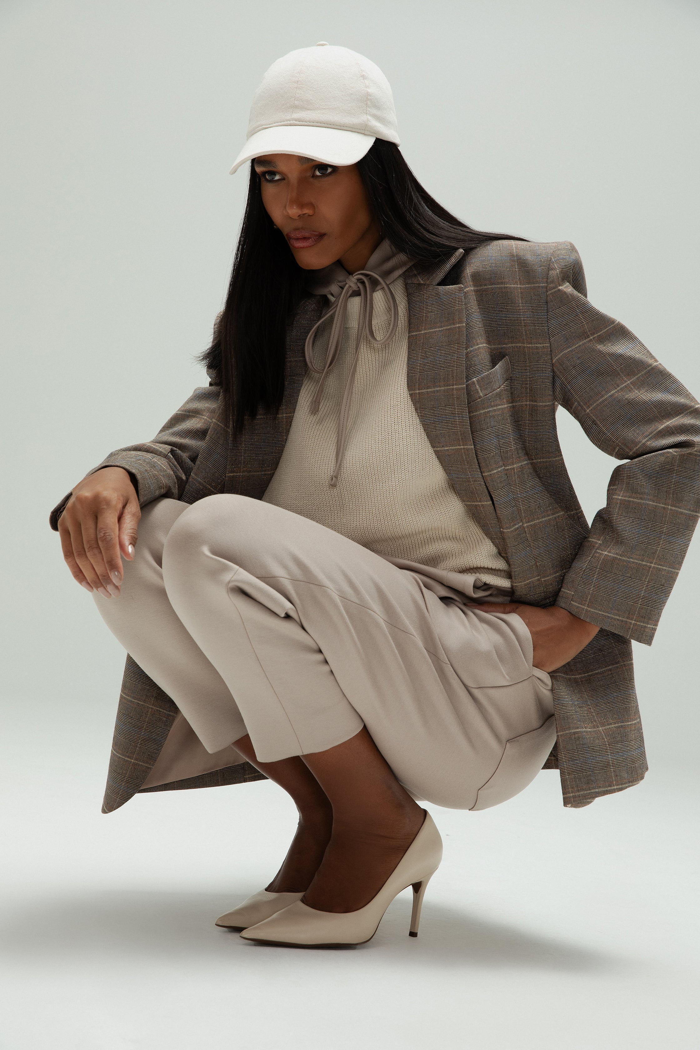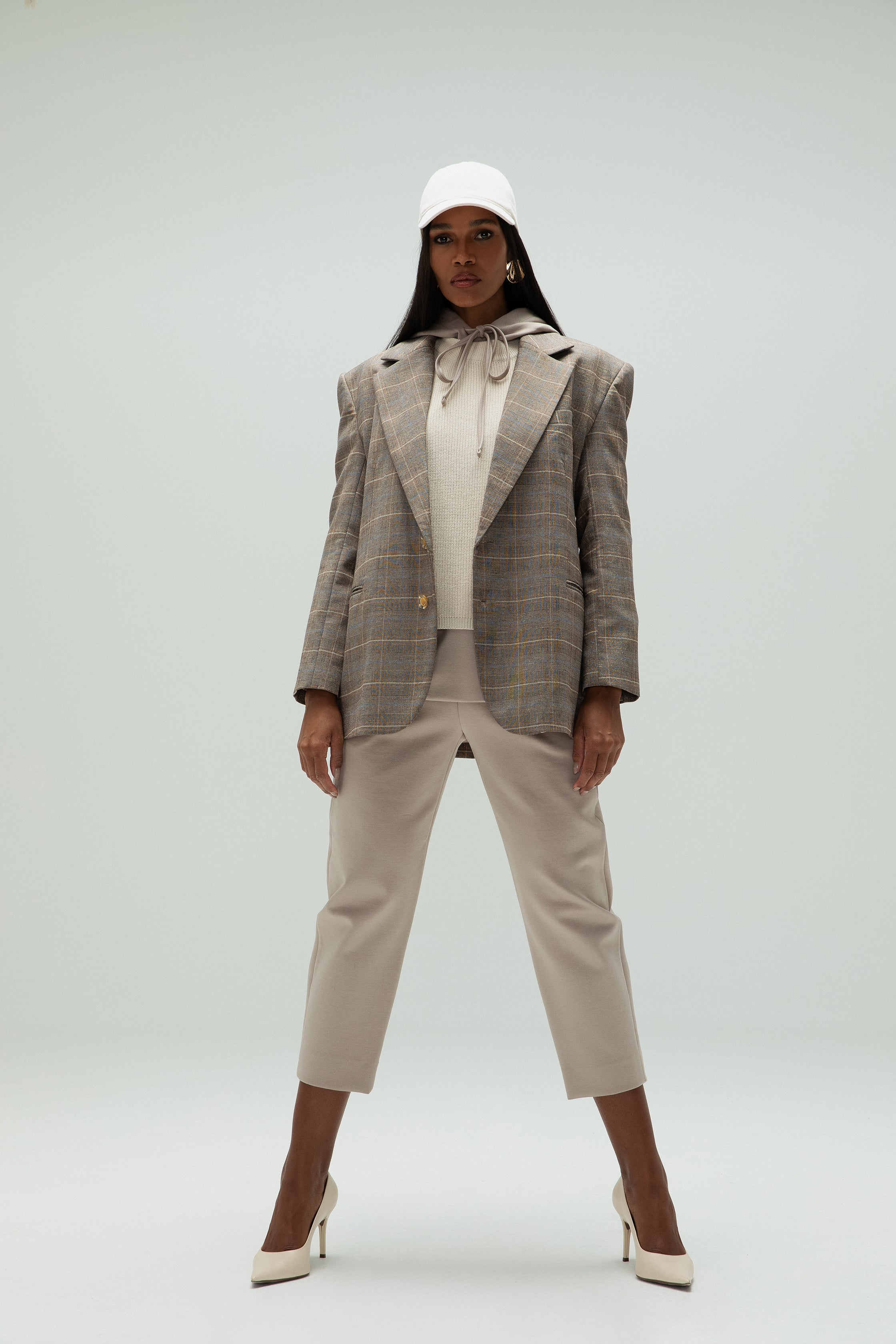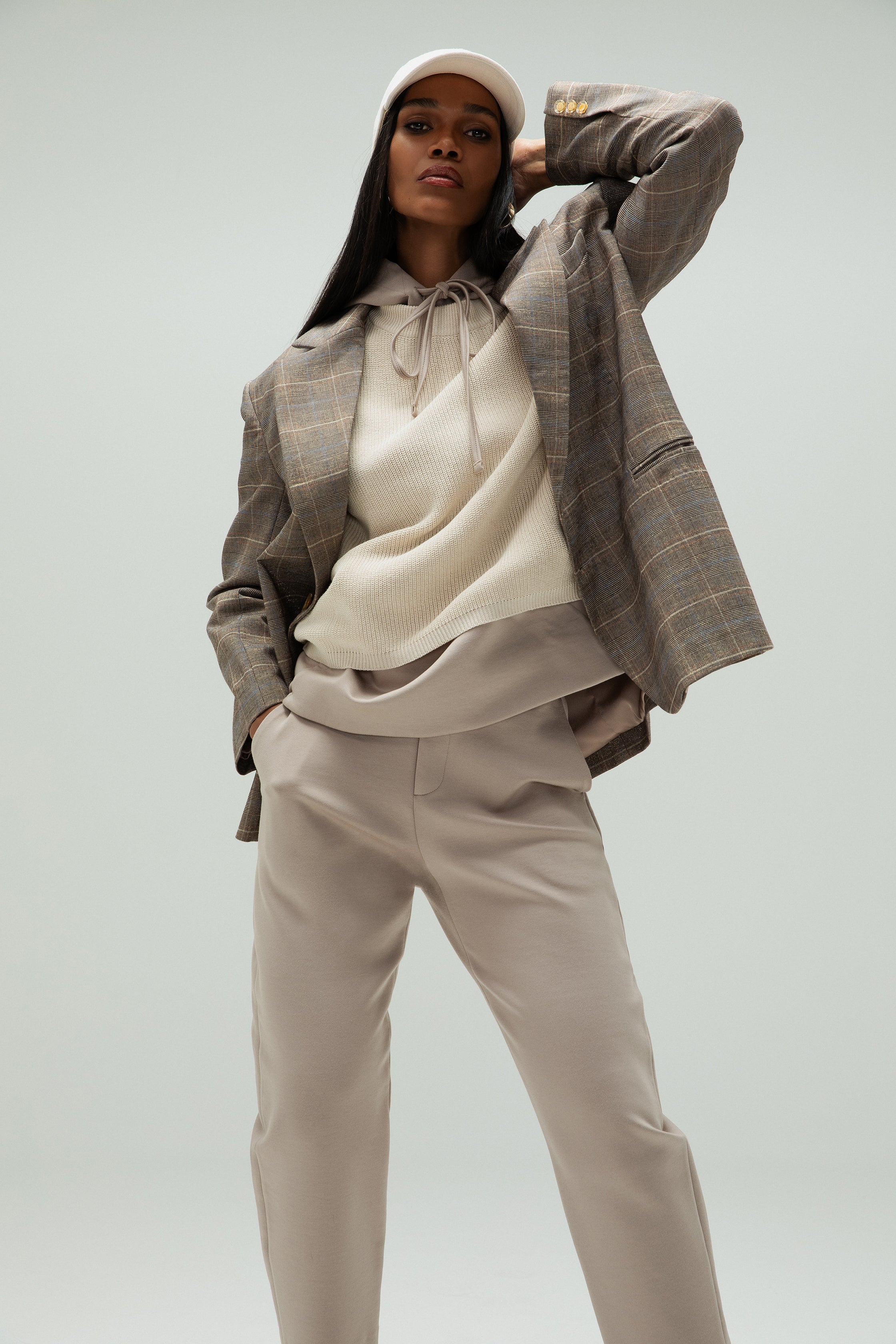 Calça de alfaiataria em malha. Fabricada em malha encorpada e pesada, possui tecnologia de controle de emissão de Co2 e certificado OEKO-TEX standard 100. Seu toque é macio e sedoso, com modelagem inspirada em alfaiataria. Seu shape levemente arredondado constrói uma silhueta cool e moderna, podendo ser combinada com peças mais arrumadas ou despojadas, trazendo versatilidade na proposta de visual. Possui cós elástico nas costas e acabamento de bainha invisível realizado à mão.