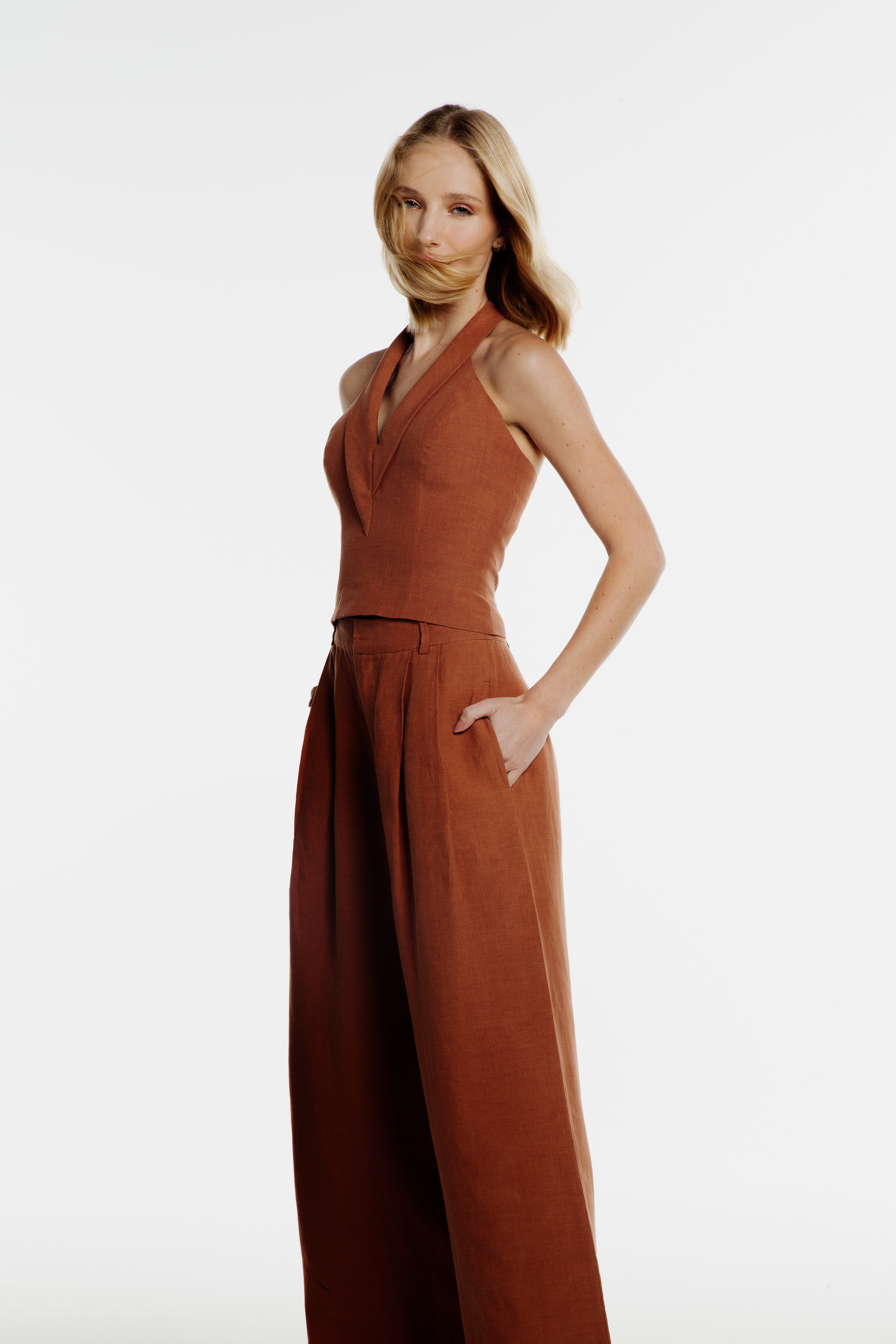Um item essencial e atemporal, a Calça Orvalho é uma peça pra vida toda. Confeccionada em tecido 100% linho, possui pregas na frente e modelagem pantalona. Seu caimento é natural e fresco, ótimo para dias quentes de verão.