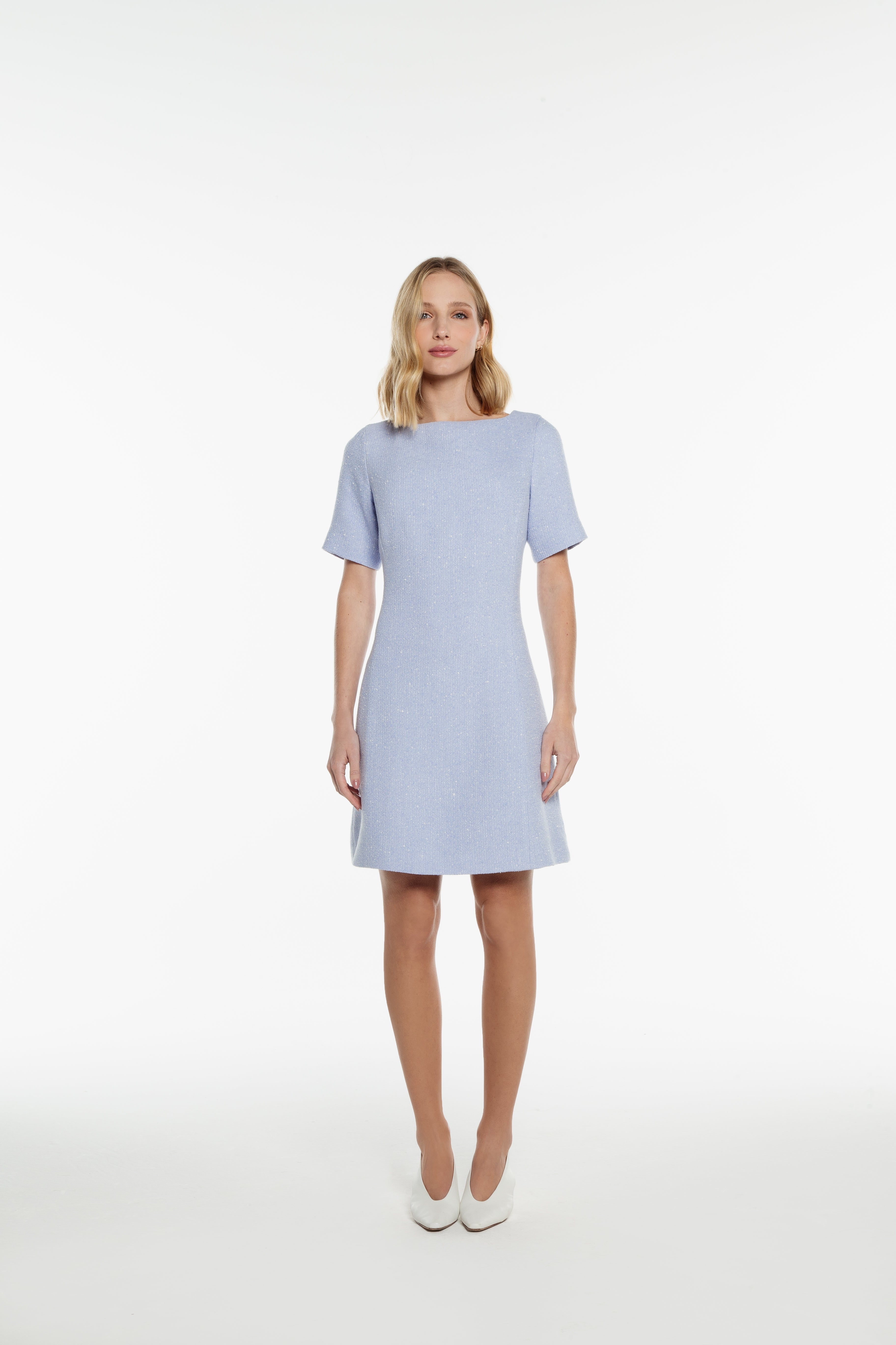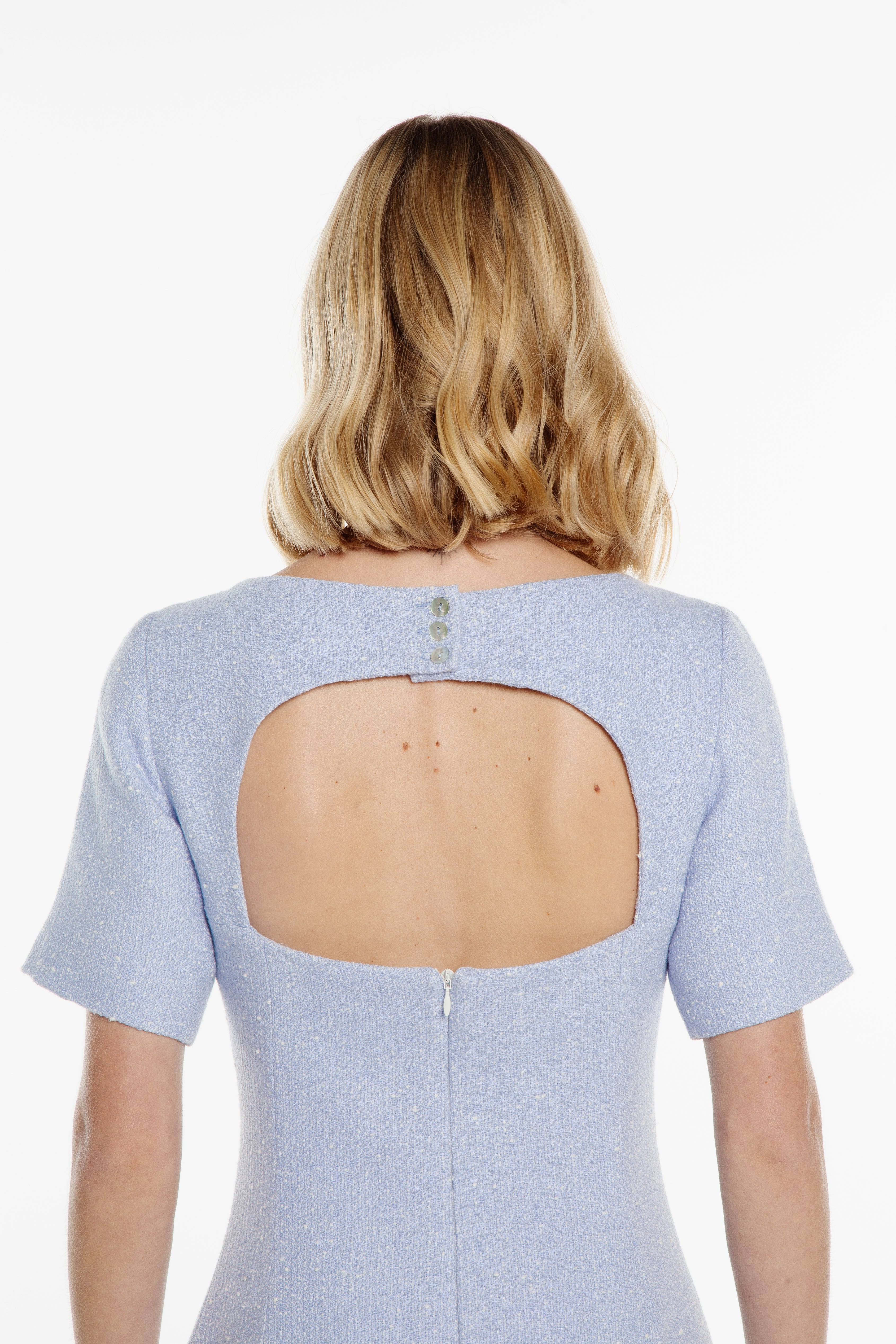 De estilo feminino e elegante, o Vestido Bruma é fabricado em tecido de caimento pesado e com textura botonê, trazendo a este produto um ar de primaveril e casual. A peça é completamente forrada e possui uma pala vazada nas costas com fechamento de botões de madrepérola verdadeira e zíper invisível.