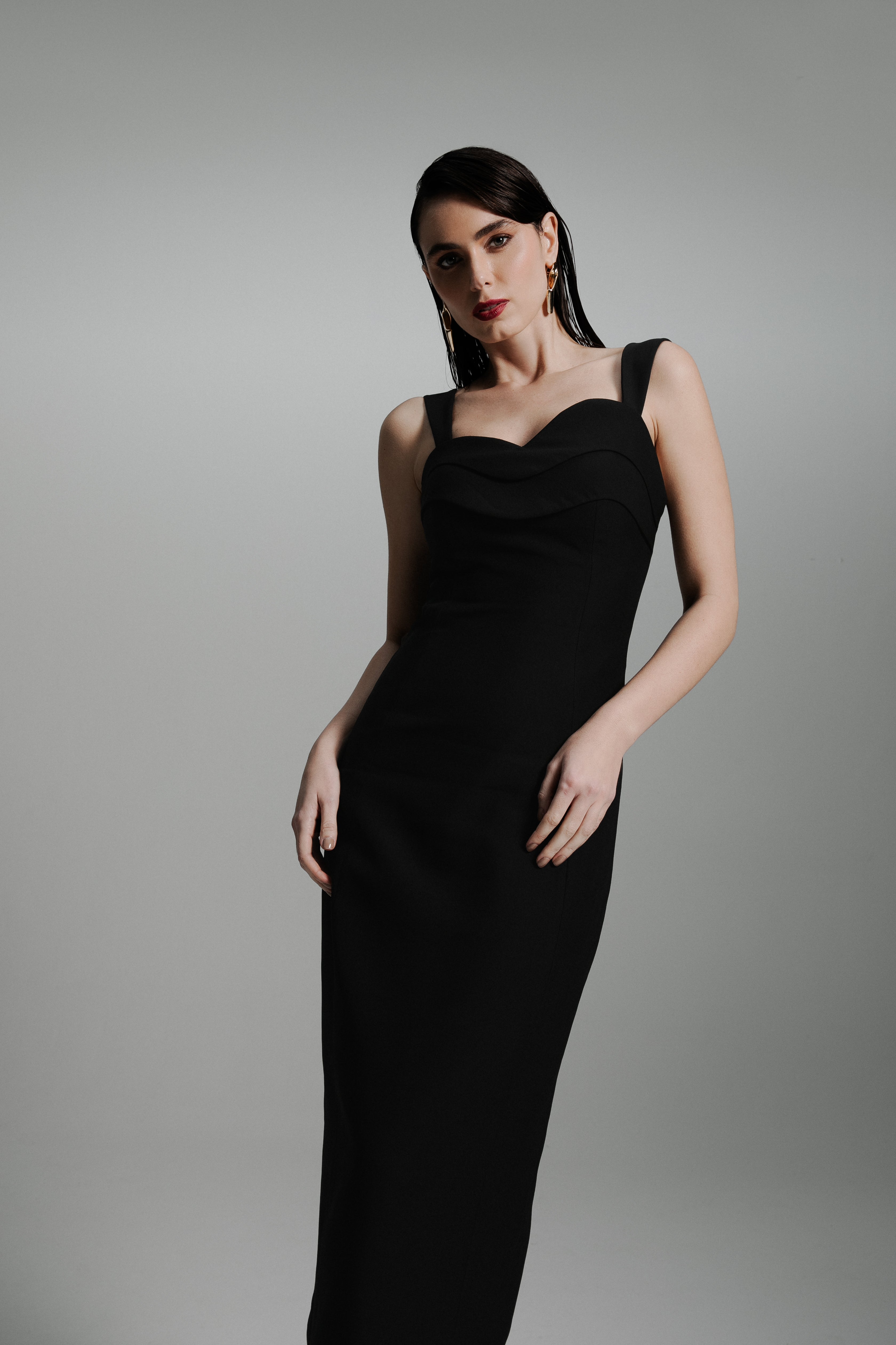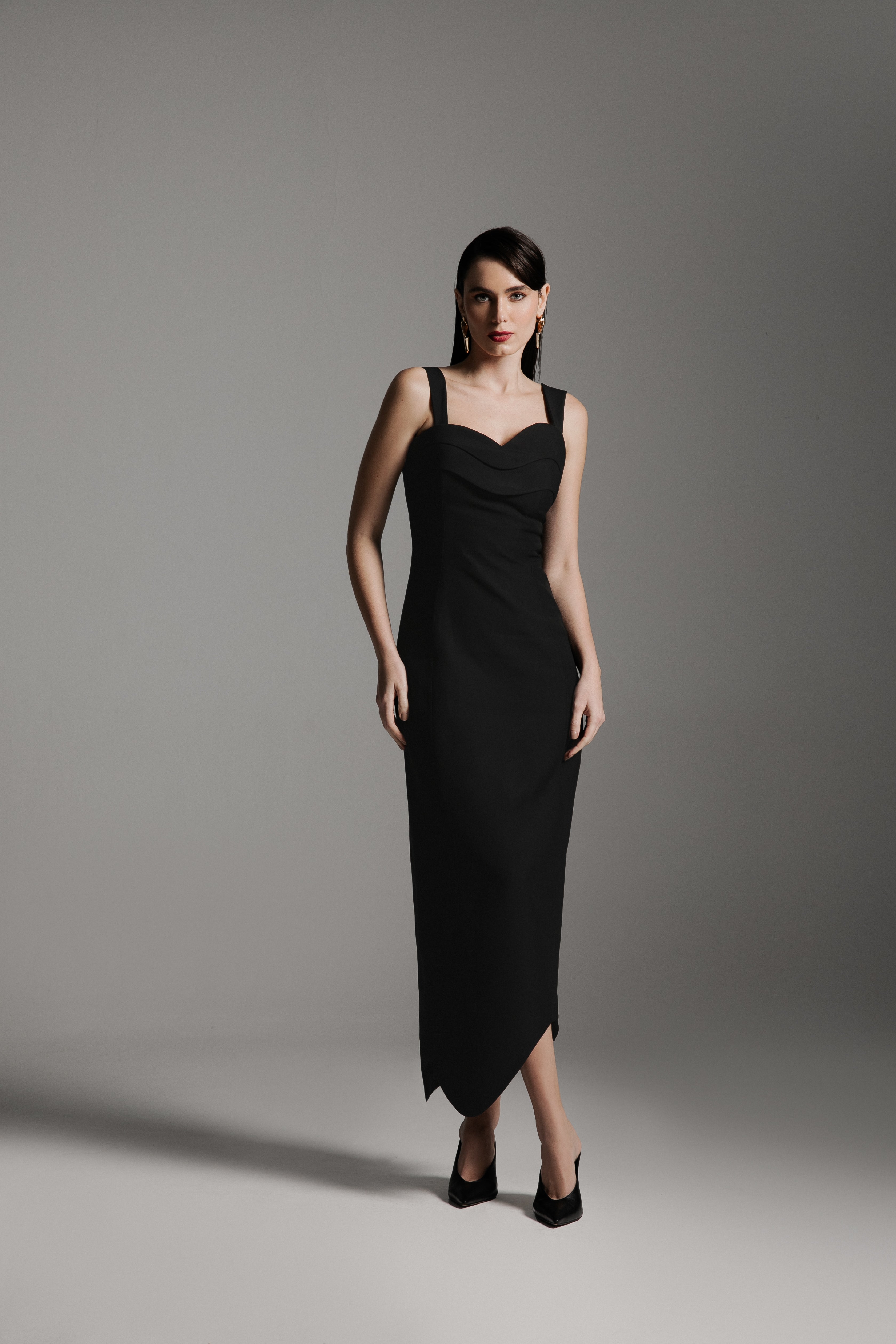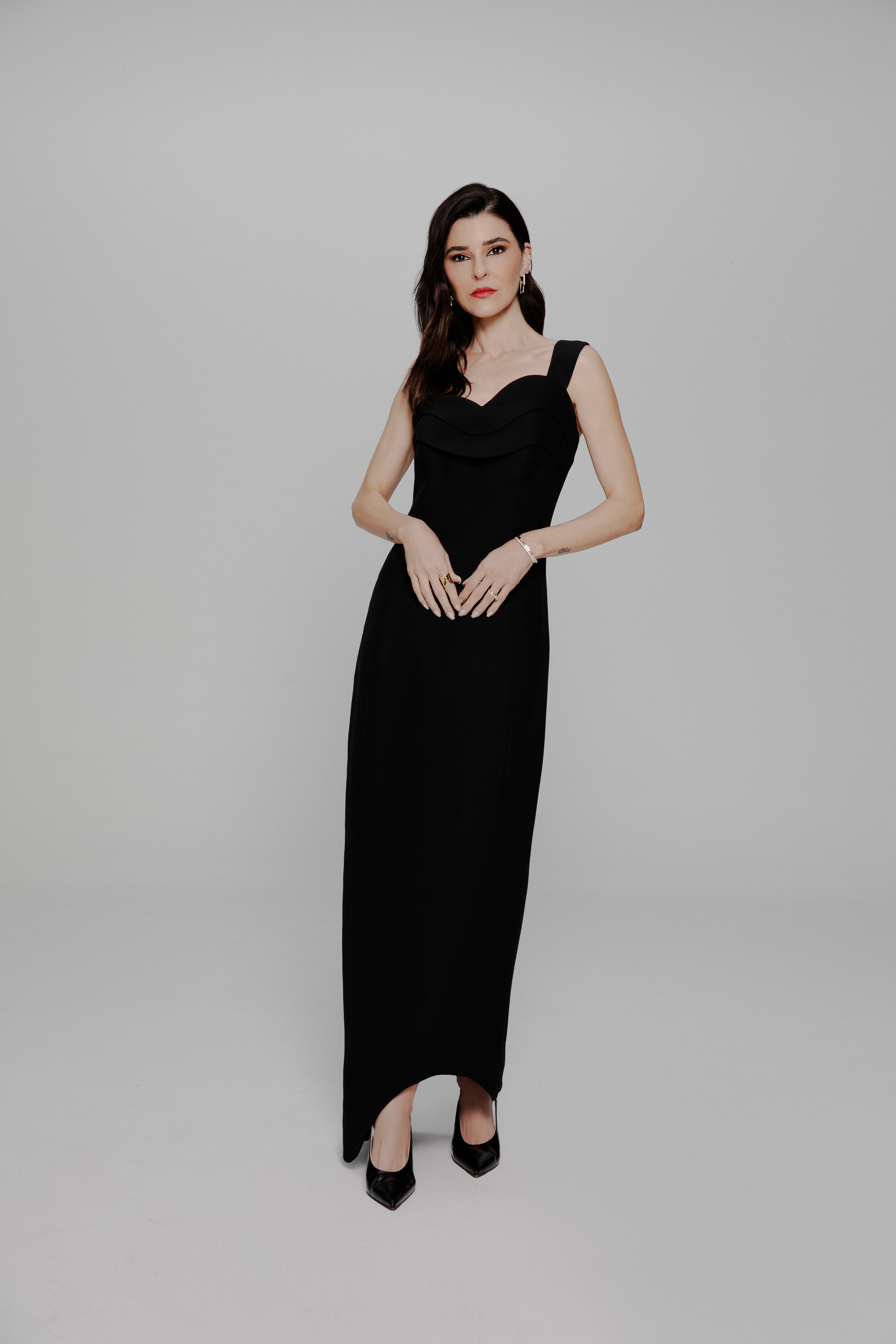 Fabricado em crepe patou, o Vestido Ondulante é inspirado a partir do modernismo arquitetônico brasileiro e faz parte da coleção Horizonte Moderno da LAUDA com a influenciadora LU RAJÃO. Desenvolvido a partir do estudo de curvas, este vestido possui um decote assimétrico e com camadas de tecido sobrepostas, formando um desenho único e exclusivo. O modelo é ajustado ao corpo e desce reto até a barra, também assimétrica, terminando na altura dos tornozelos. O produto conta com alças largas, irregulares e curvadas, é todo forrado e o seu fechamento é através de um zíper invisível no centro costas, onde ainda é contemplada com uma fenda para maior vestibilidade.